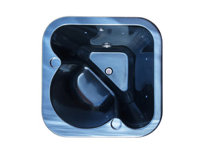 Ólíkt flestum rafmagnspottum á markaðnum þá eru pottarnir okkar með yfirfalli og niðurfalli í lægsta punkti. Hvort tveggja hefur tengimöguleika á 50mm tenginu til fráveitu og intaks ásamt garðslöngutengingu. Þessu má stýra með kúlulokum inn um lúgu á hlið pottsins.