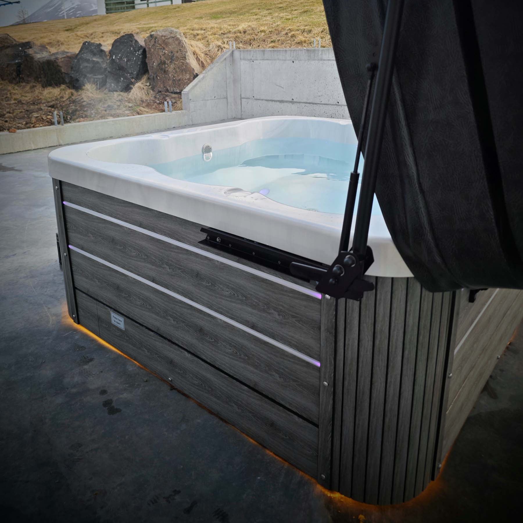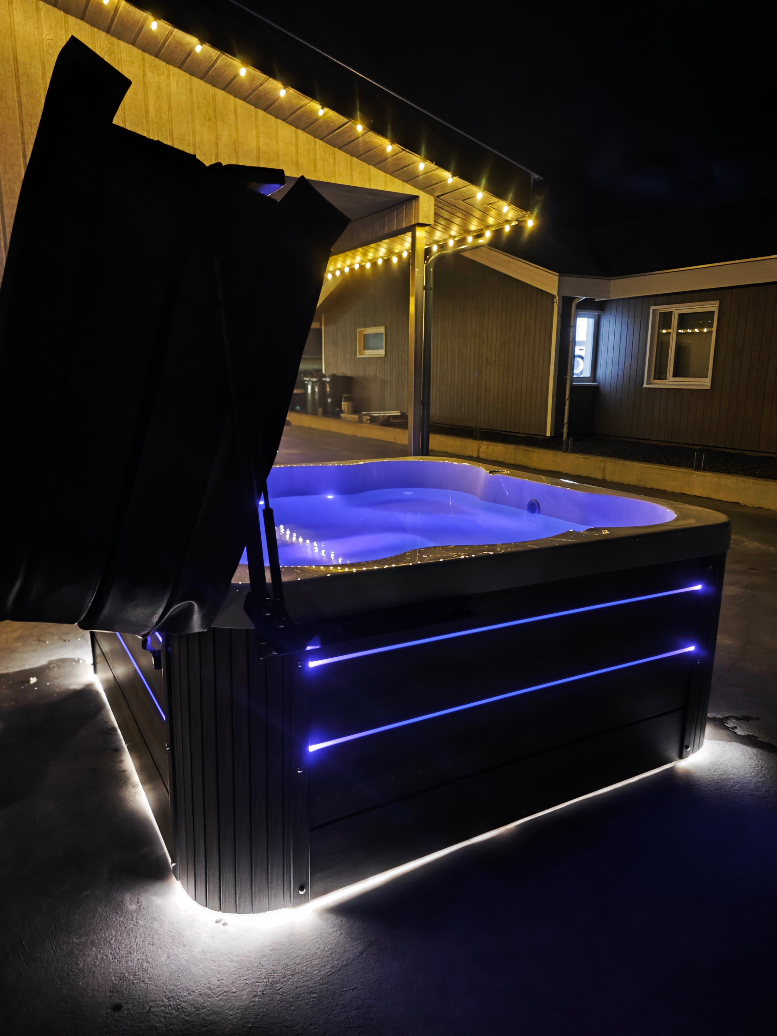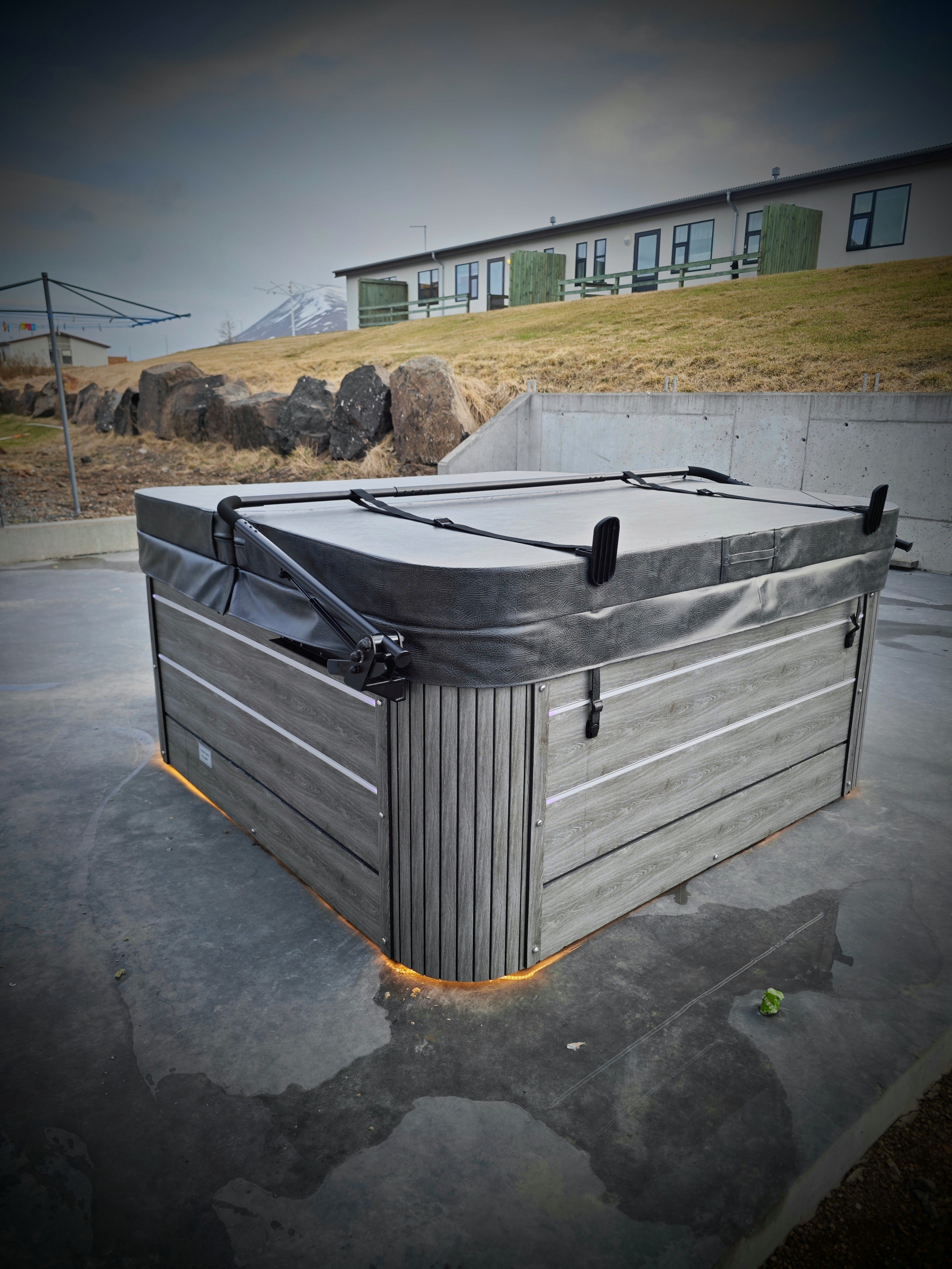 Þessi 1500 lítra pottur frá PolarSpa er hannaður fyrir þá sem vilja stóran og rúmgóðan heitan pott sem stenst íslenskar aðstæður – bæði hvað varðar einangrun, efnisval og frágang. Potturinn er tengdur við hitaveitu og hentar fyrir 6–7 manns með góðu sætarými og dýpt sem tryggir rúmt fótaspláss og þægindi í öllum veðrum.
