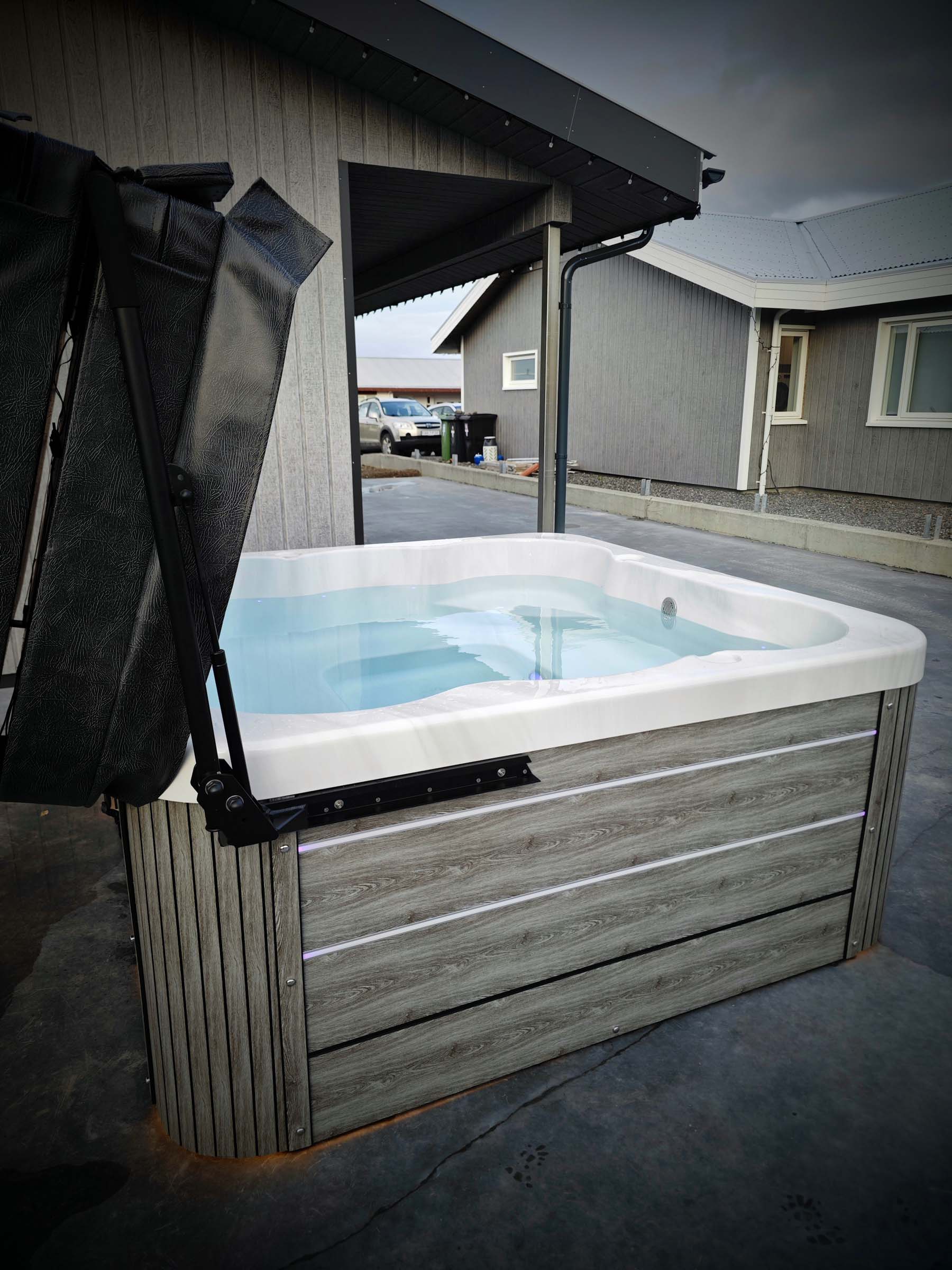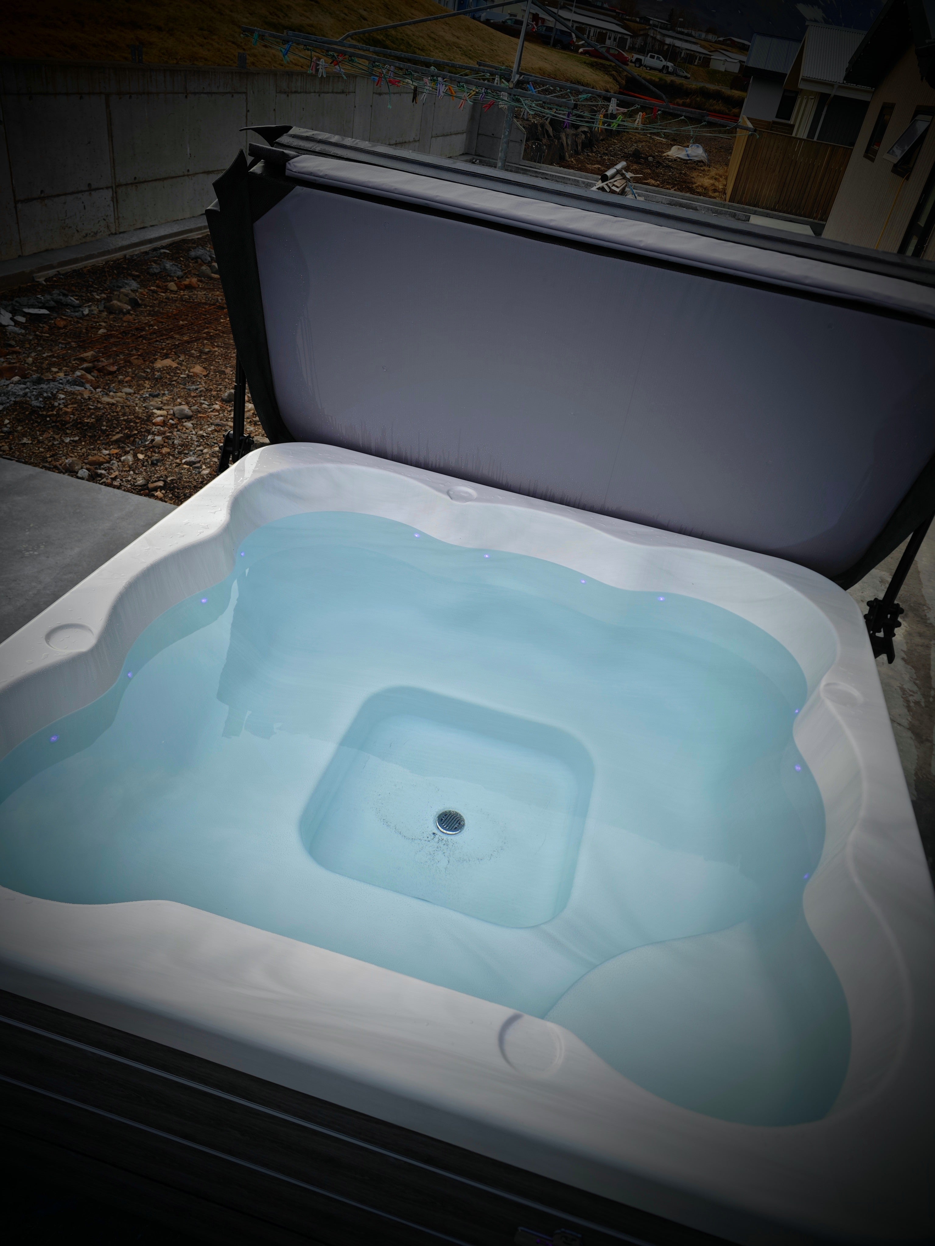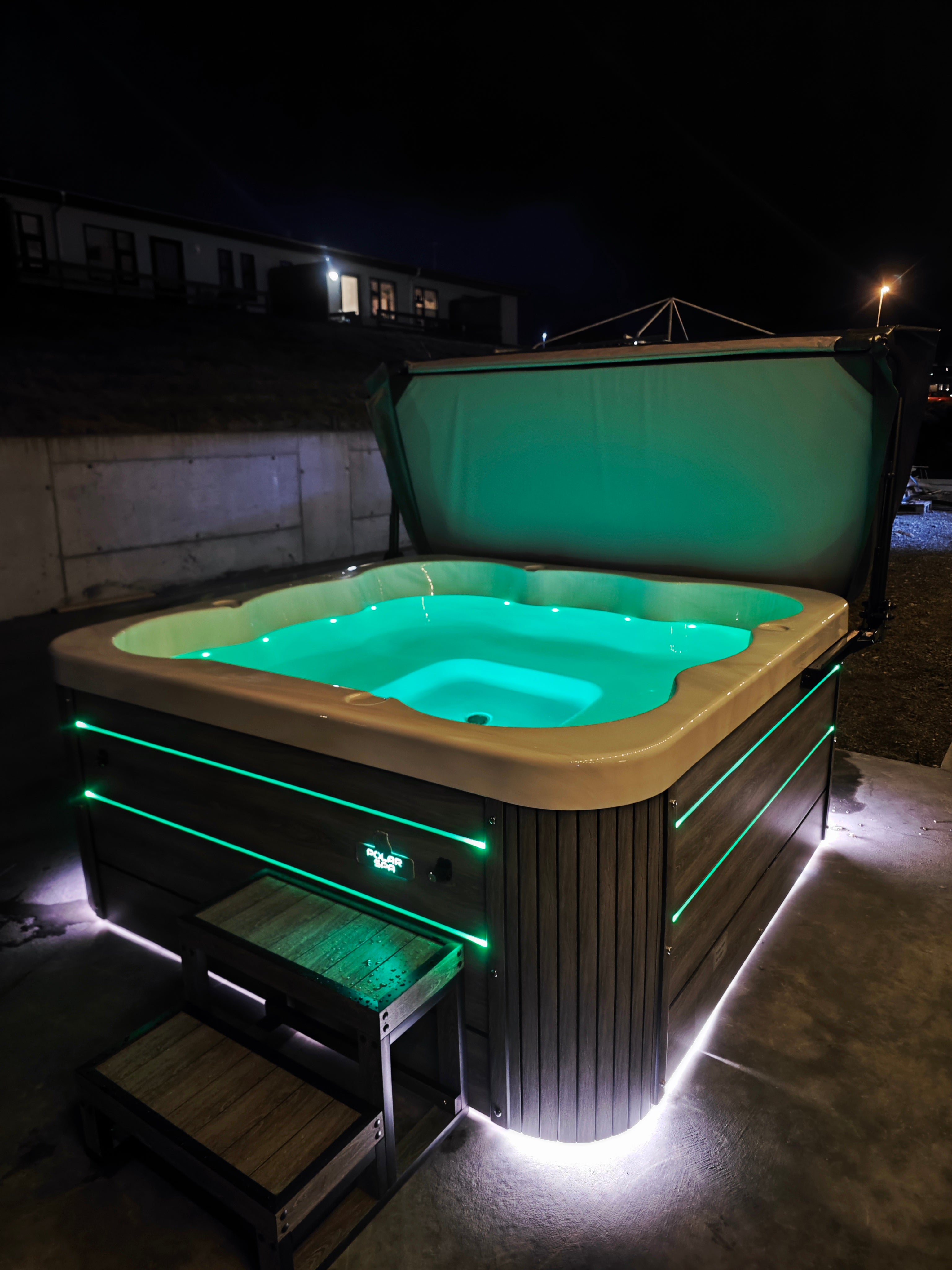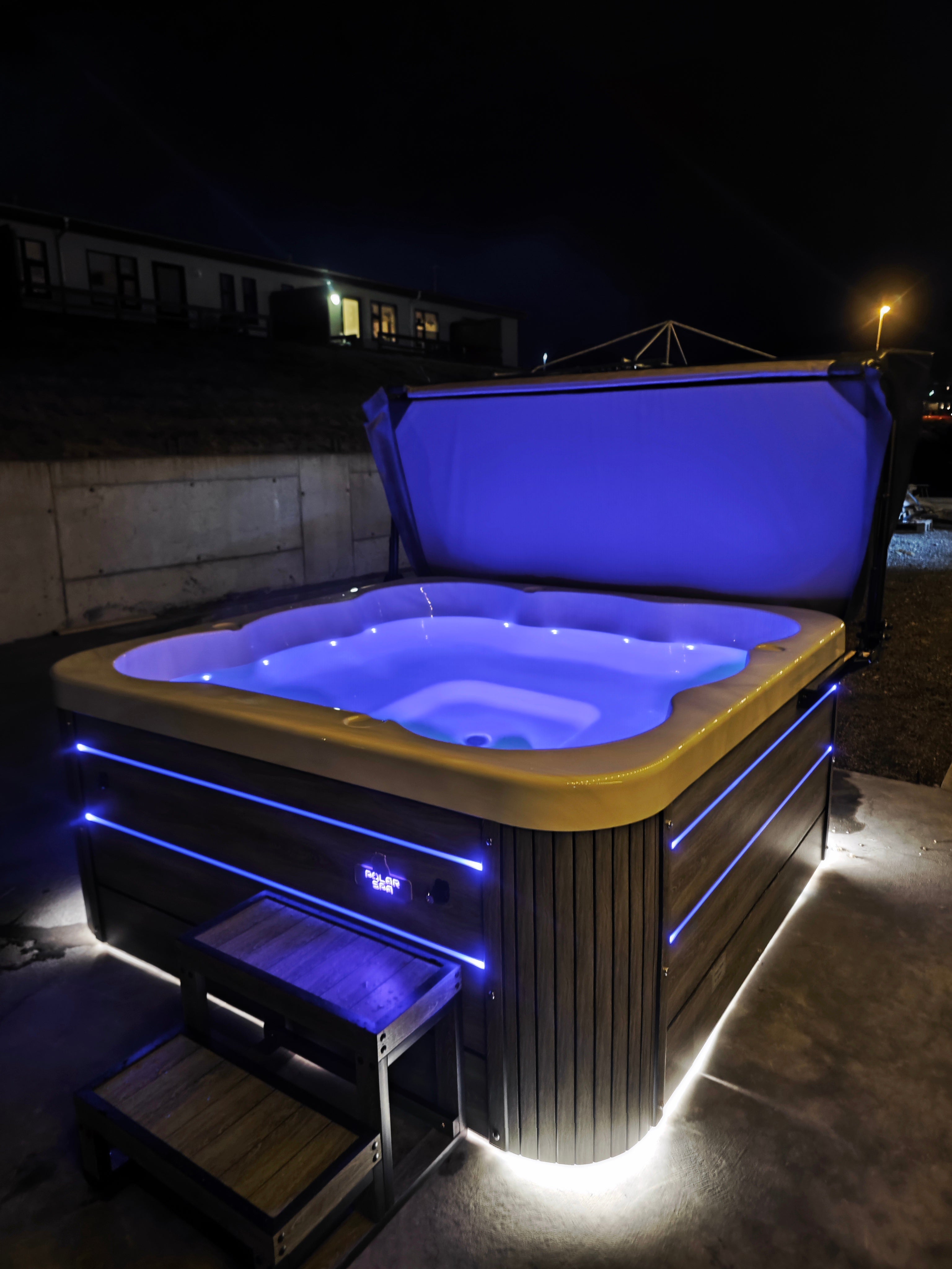 Þessi 1500 lítra pottur frá PolarSpa er hannaður fyrir þá sem vilja stóran og rúmgóðan heitan pott sem stenst íslenskar aðstæður – bæði hvað varðar einangrun, efnisval og frágang. Potturinn er tengdur við hitaveitu og hentar fyrir 6–7 manns með góðu sætarými og dýpt sem tryggir rúmt fótaspláss og þægindi í öllum veðrum.